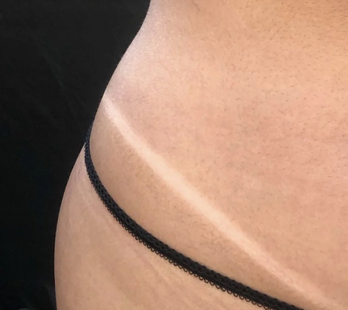 Our spray tans are hand sprayed using body contouring techniques. With our specific body positioning + 2 coat application our spray tans achieve complete + even coverage. We thoroughly apply barrier cream before your tan, dry throughout your spray and finish with drying powder.